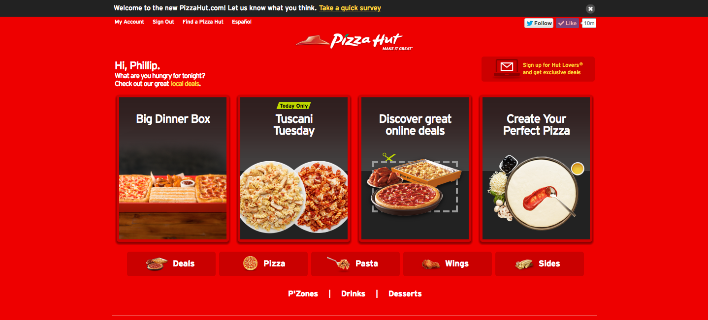 Re-Design Pizza Hut's website, loyalty program, and transform the in-store experience.